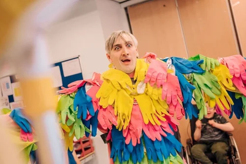 Gaggle is a theatre performance featuring physical comedy, circus and live music. It is made for audiences of young people with complex additional support needs (ASN), and their families. From the team who created MESS.